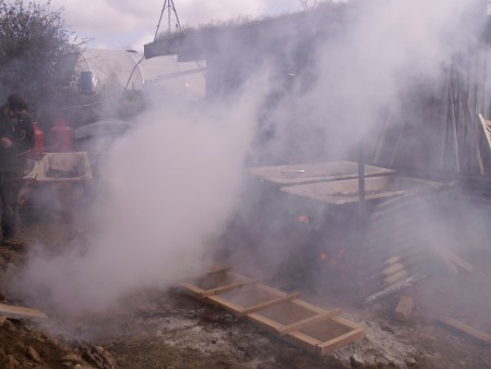 Actually the whole process was an exemplary exercise in recycling; The baths, the steel bearers, and the fire bricks were dragged out from under a hedge on the farm where I have carefully been amassing a 'that'll come in handy one day' pile.