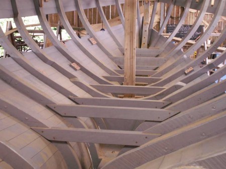 After 9 more planks we'll leave a 2 plank gap on either side to make it easier to cramp in the steamed frames and the bilge stringer. When these are in the final planks will be fitted.